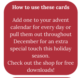 These cards create moments to slow down and be present with one another versus buying something. These are a great addition to your holiday traditions this year and every year to come!